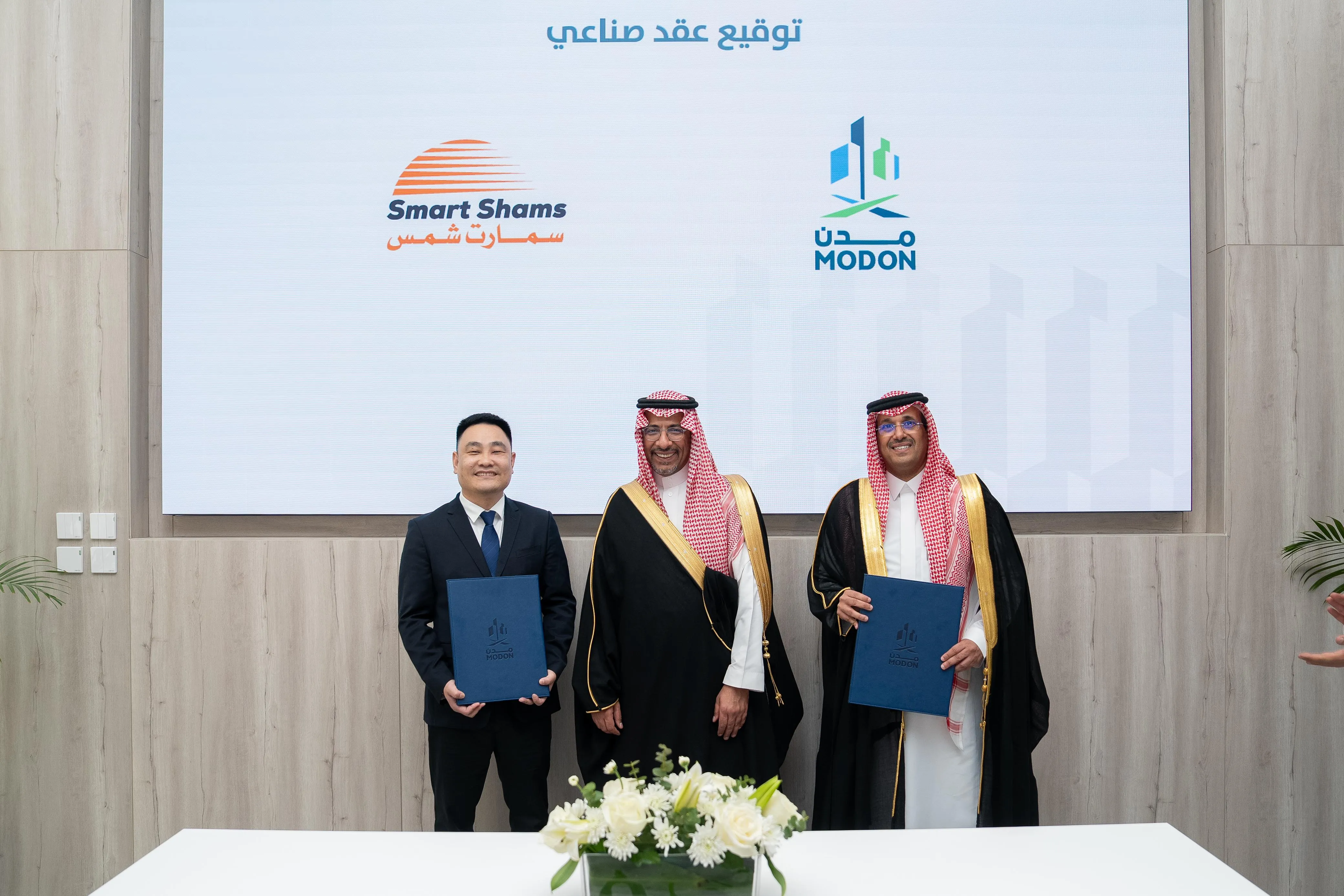 On January 27, 2026, Mr. Xu Guojun, Chairman of Smart Shams, attended the land signing ceremony held by the Saudi Authority for Industrial Cities and Technology Zones (MODON) in the Third Industrial City of Jeddah. His Excellency Bandar bin Ibrahim Al-Khorayef, Minister of Industry and Mineral Resources of Saudi Arabia, was present at the event and jointly signed the contract. This milestone marks the official entry of Smart Shams' industrial layout in Saudi Arabia into the substantive implementation phase.